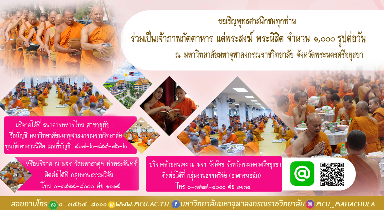 ขอเชิญพุทธศาสนิกชน ร่วมเป็นเจ้าภาพภัตตาหาร พระนิสิต มจร